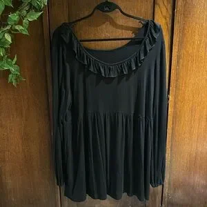 Black, long sleeve, empire waist, ruffled trim neck