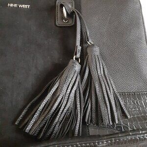 Elegant black tote bag with tassel detail. Perfect for everyday use.