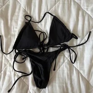 Sleek and stylish black triangle bikini set perfect for a day at the beach. Enjoy comfort and elegance with this must-have swimwear. Size medium but runs a bit small.