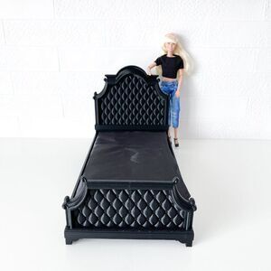 Black Tufted Miniature Chesterfield Bed Queen Size 1:6 Scale for Barbie Integrity 12" Fashion Doll NEW