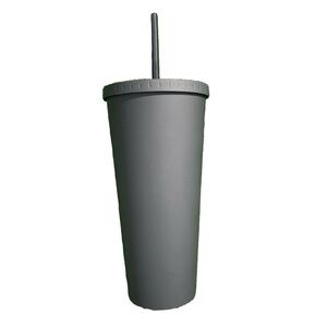 Sleek matte gray tumbler with matching straw. Perfect for on-the-go hydration.