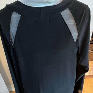Beautiful blank long top with mesh on the shoulders and sleeves. Full sleeves. Polyester / Spandex. Size 10.
