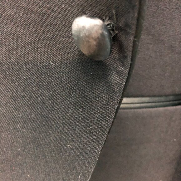 Button(s) may have been re-attached or updated. There may be a pulled thread or some light evidence of wear. There may be evidence of some light flower stamen on the lapel from a boutonniere (doesn't always come out from the dry cleaner. This is something almost no one notices but am mentioning it just in case).