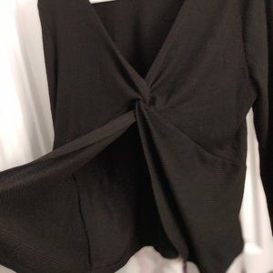 Waffle knit sweater with a twisted knot beneath the bust. Wear with any tank top or T-shirt for a pop of color.