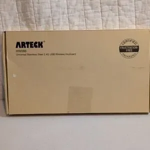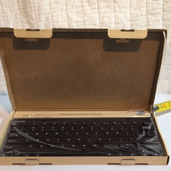 Experience seamless typing with the Arteck Black Wireless Keyboard. Its sleek black design complements any workspace. 11" wide, cable included.