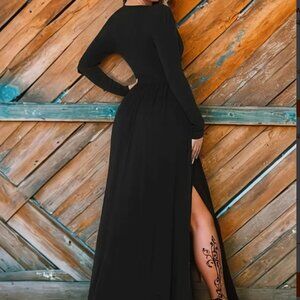 Black V Neck Boho Western Maxi dress - Double leg slits - Medium