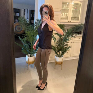 Details: Black V-neck halter that sits perfectly at the waist line. Perfect for multiple occasions, pairing with jeans or under a blazer. A classic piece that will not go out of style.