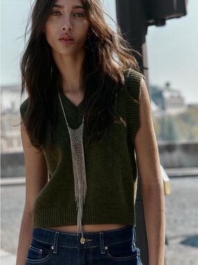 Lightweight knit that drapes easily and works well layered over shirts or worn on its own. Classic wardrobe basic that pairs with denim, trousers, or skirts.