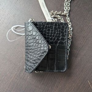 Black Vegan Croc leather chain strap wallet