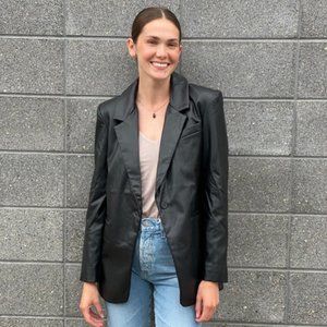 We are obsessed with the Alexis Vegan Leather Black Blazer! Take your look to the next level by adding this timeless blazer to any outfit! This blazer is the perfect way to take your look up a notch and show off your style in an unexpected way. Plus, it's timeless and vegan-friendly, so you can feel good knowing you look good!