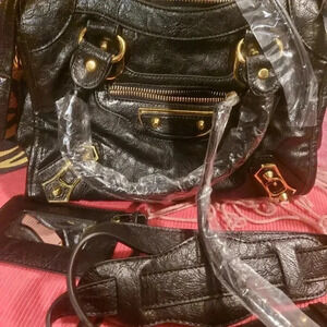 Black Faux Leather with Gold hardware