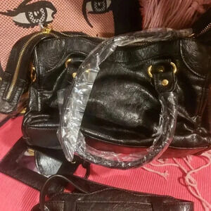 Black Vegan Leather Moto City Satchel Bag with Tassels Removable Strap