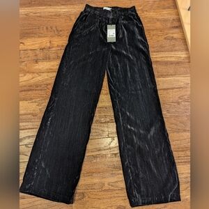 Black Velvet Wide leg Boho pants, by COSTE Europe. New Size XS COSTE rebel line. Add a touch of texture to any look with these high-rise, wide leg pants featured in a cool and crinkly velvet fabrication for added dimension. Price on tag is in Euros. 50€ equivalent to approx $75