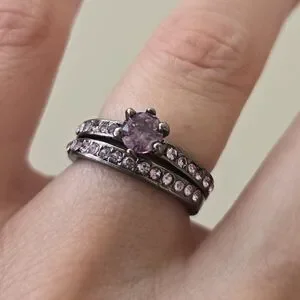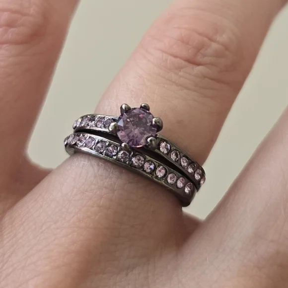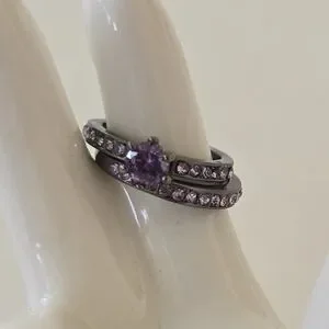 2 New black metal rings w/ purple Zircon Rhinestones