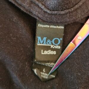 M&O knits, Made in Mexico, Excellent Condition, Fitted Size L, telling truths!