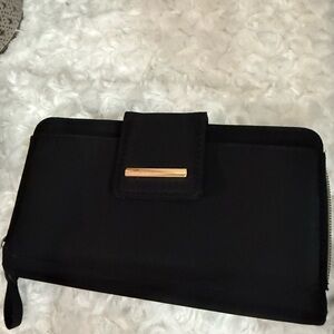 Stylish black wallet featuring a gold accent. Perfect for everyday use.