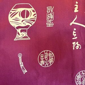 ✔️ Material: Wool front; satin backing - the fabric composition label is missing, but I'm confident the tartan side is 100% wool, but unsure if burgundy reverse is silk, a silk blend or a synthetic)