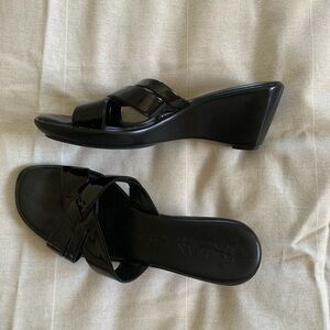 Comfortable sleek black wedge sandals