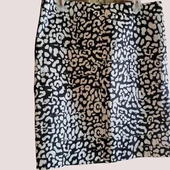 Black & White Animal Print Pencil Skirt Horizontal Pleats Med