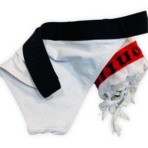 White & Black Elasticated Waistband Bottom Swimsuit.