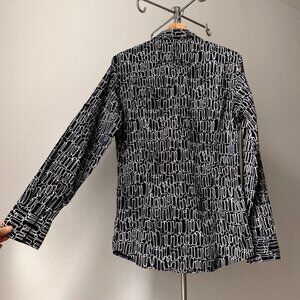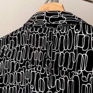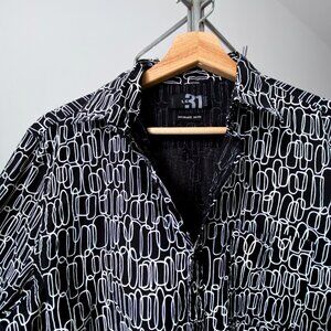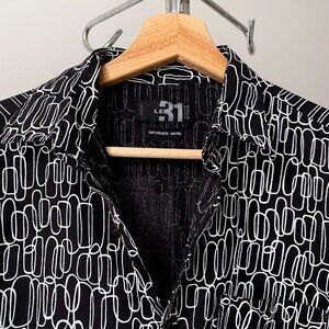 🌿 Black & White Geometric Print Semi Fitted Cotton Button Down Shirt by Le 31
