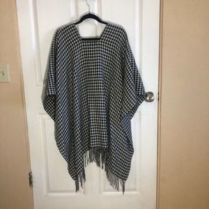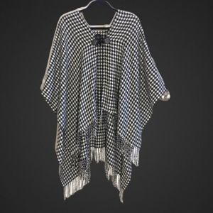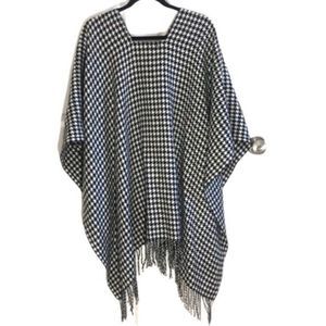 Black White Herringbone Knit Warm Shawl Wrap Y