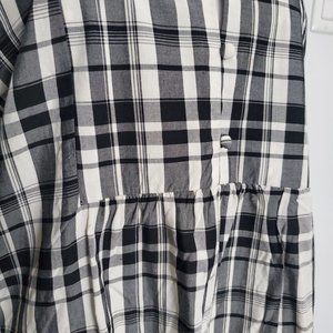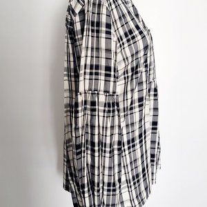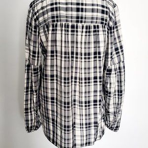 Black & White Plaid Blouse Holiday Cottagecore Baby Doll Balloon Sleeve
