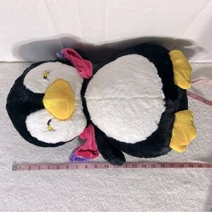 Black White Plush Penguin Toy With Scarf Stuffed Animal