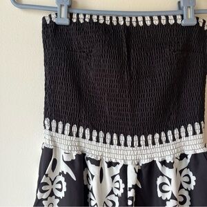 Black White Strapless Jumpsuit Women’s L Smocked Bodice Wide Leg Boho Resort
