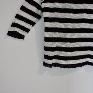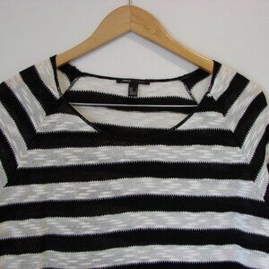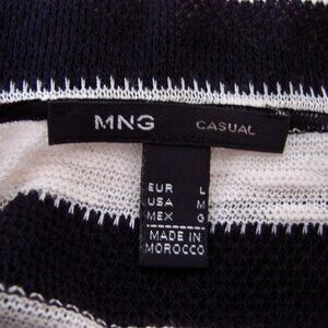 Black White Striped Knit Top Crewneck Boxy Lightweight MNG Mango Size Medium
