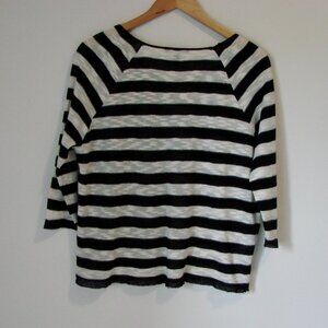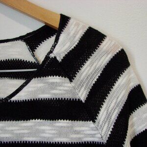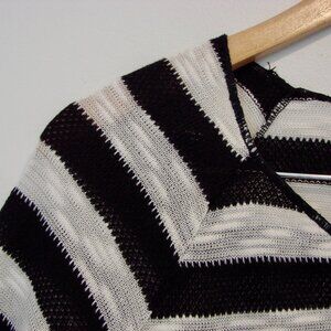 Black White Striped Knit Top Crewneck Boxy Lightweight MNG Mango ~ Size Medium ~ 49% Cotton, 31% Polyester, 20% Acrylic