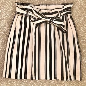 This skirt is high waisted with a tie in front to finish the look. The fit is true to size. Main : 90% viscose, 10% linen. Lining : 65% polyester, 35% cotton.