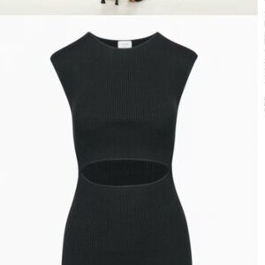 Black Wilfred Coutout Mini Knit Dress in size small. It is a knit sweater dress with a cutout in the front. I've only worn it a few times and am selling it because it no longer fits.