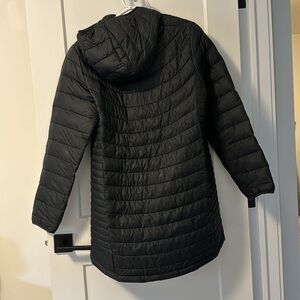Black winter coat. Worn for one winter season. Jacket is in great condition and super warm and cozy. Hits right above the knee. Has two pockets on the outside and one on the inside of the jacket. Has a hood
