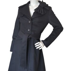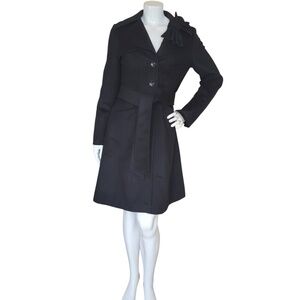 Black Wool Cashmere Coat with Bow Detail & Belt SZ6 US(10 EU)
