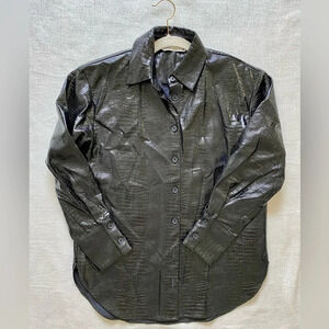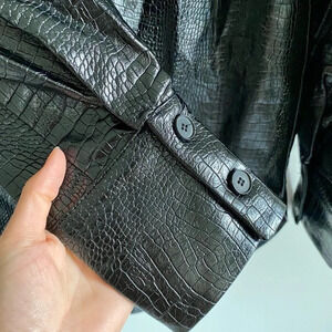 Black Zara Faux Leather Crocodile-Effect Oversized Shirt Jacket Size Small