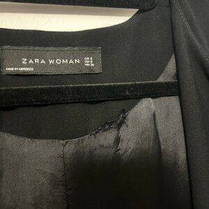 Black Zara long open vest with side slits. Side pockets. Minor rip on lining, close to back tag. (see photos)
