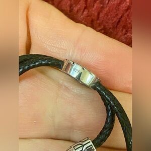 Black and 925 Sterling Silver Beaded Bracelet with Cross Pendant
