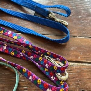 This set of cat accessories includes a black thick harness, a vibrant blue leash, pink with paw print leash, aqua harness, and a trees “safe cat” collar. perfect for stylish and secure outings. Designed for comfort and durability, these items ensure your cat can explore with ease and flair. Used but in excellent condition.