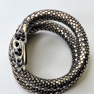 Black and Clear Rhinestone 3 Coil Serpent SIlver Snake Bracelet