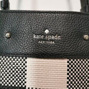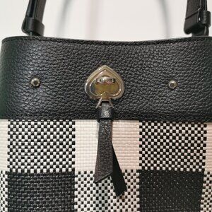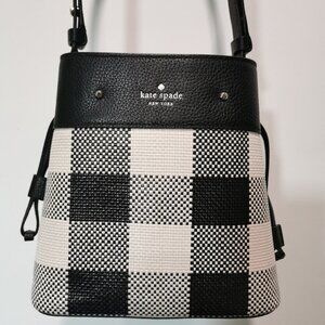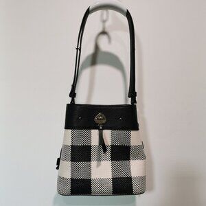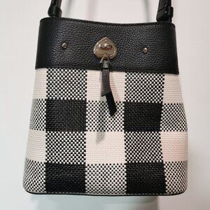 Black and Cream Plaid /Gold Pebbled/Embossed Leather Bucket Bag EUC # 263