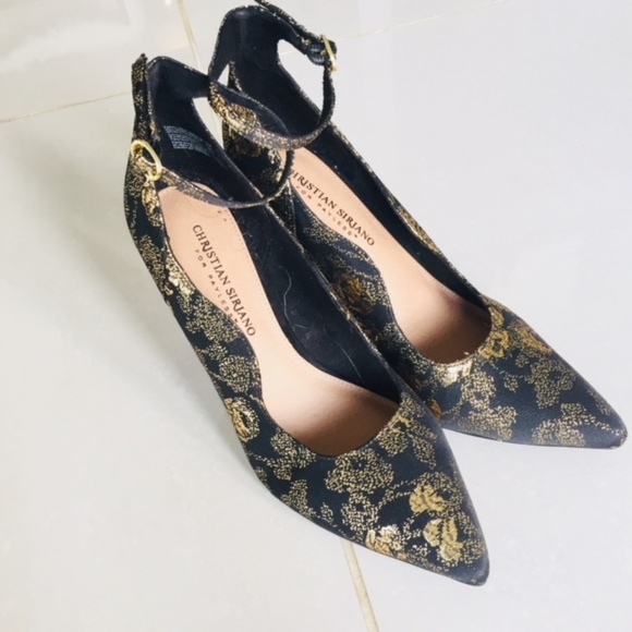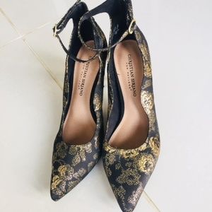 Black and Gold Floral Heels
