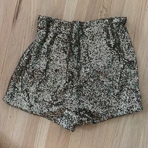 Black and Gold Sequin high rise Shorts Side zipper Very flattering Size L Excellent condition