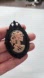 Black and Pink Skeleton Lady Cameo Victorian Style Pendant Brooch, NWT