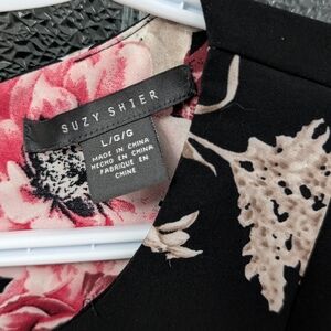 -floral pattern with pink roses against a black backdrop