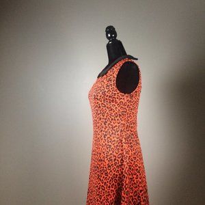 Sweet leopard print mini dress with a Peter Pan black collar. Very cute with black leggings and boots.