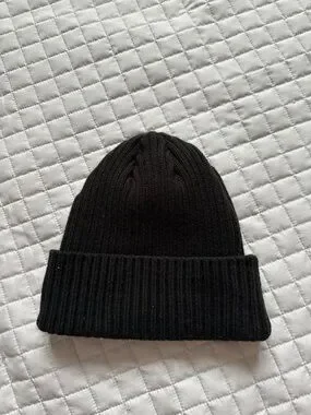 Stylish black ribbed beanie featuring a bold red embroidered logo on the cuff. Soft knit construction provides comfortable warmth. Sleek black and red design pairs well with casual outfits. Easy to wear and care for.