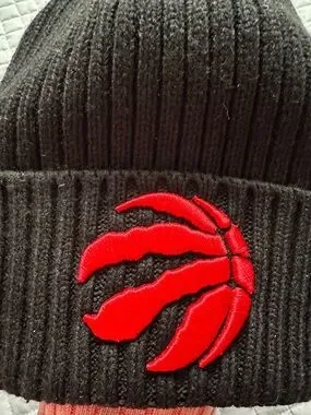 Black and Red Ribbed Beanie with Red Embroidered Raptors Logo