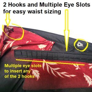 Adjustable Waist - Velcro Waistband & 2 Hook closures with multiple eye inserts on waistband - see pic attached