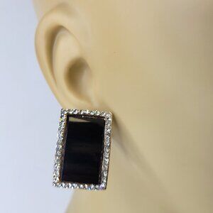 Black and Silver Crystal Rectangular Earrings